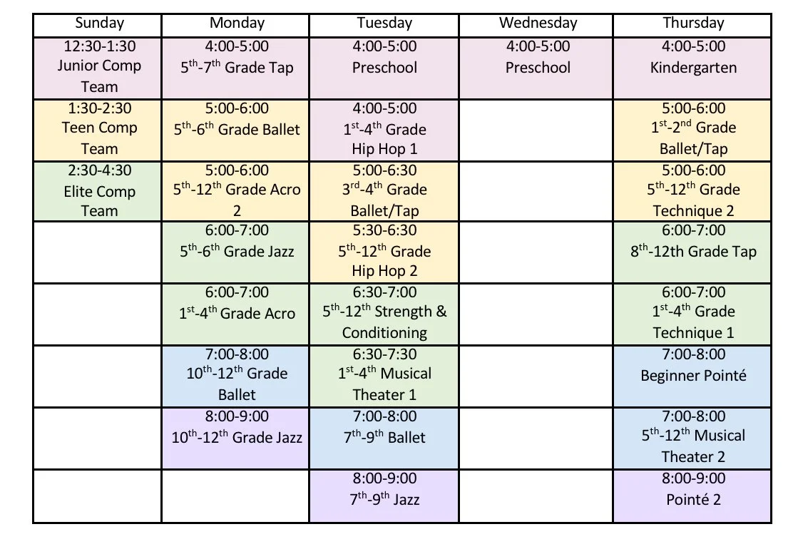 *New this season: 5th-12th Grade ballet and jazz has been broken up into 3 age groups: 5th-6th Grade, 7th-9th Grade, and 10th-12th Grade.